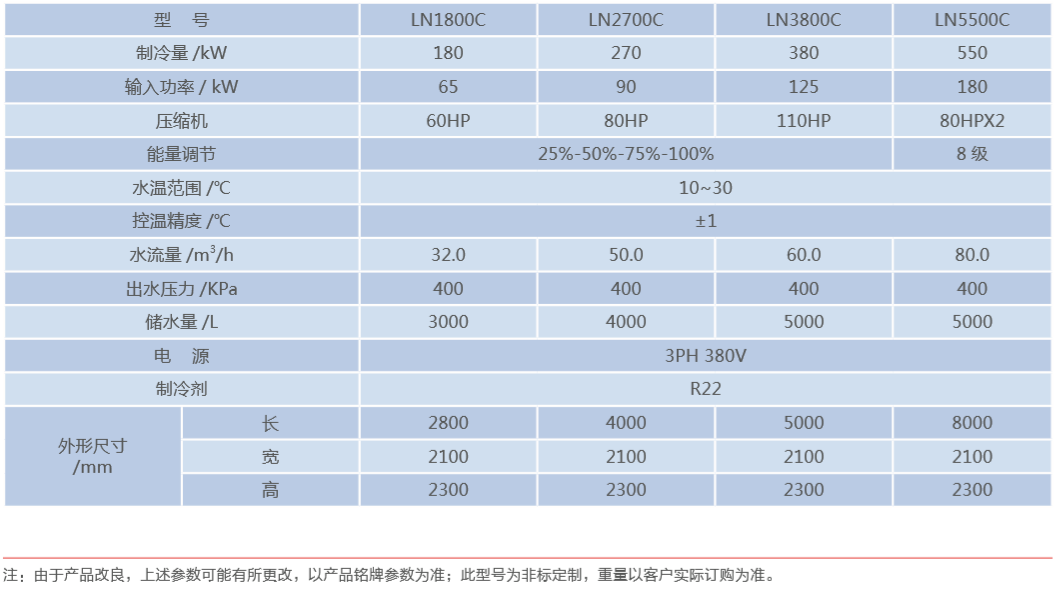 根據(jù)用戶要求的制冷量而定制,制冷主機(jī)采用效率更高的螺桿式制冷壓縮機(jī),視功率大小室外機(jī)或?yàn)閱闻_(tái)和多臺(tái)分別控制運(yùn)行。配 7 寸 PLC 彩色 液晶觸摸屏,功能強(qiáng)大,結(jié)構(gòu)緊湊。選配高效低噪聲風(fēng)機(jī)。制冷系統(tǒng)加配經(jīng)濟(jì)器和噴液裝置,在提高增提性能的同時(shí),保證壓縮機(jī)在環(huán)境溫度下更 可靠的運(yùn)行。水箱、水泵現(xiàn)場(chǎng)布置。